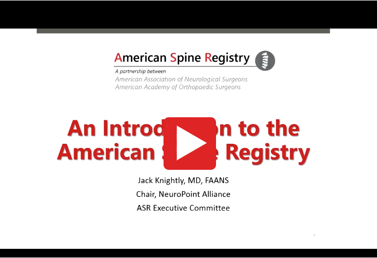 Featuring NeuroPoint Alliance Chair, John “Jack” Knightly, this video provides an overview of the ASR. Topics covered include: the need for spine data, the AANS and AAOS collaboration, the shared quality vision for the ASR, ASR data elements and participation framework and research and data reuse opportunities